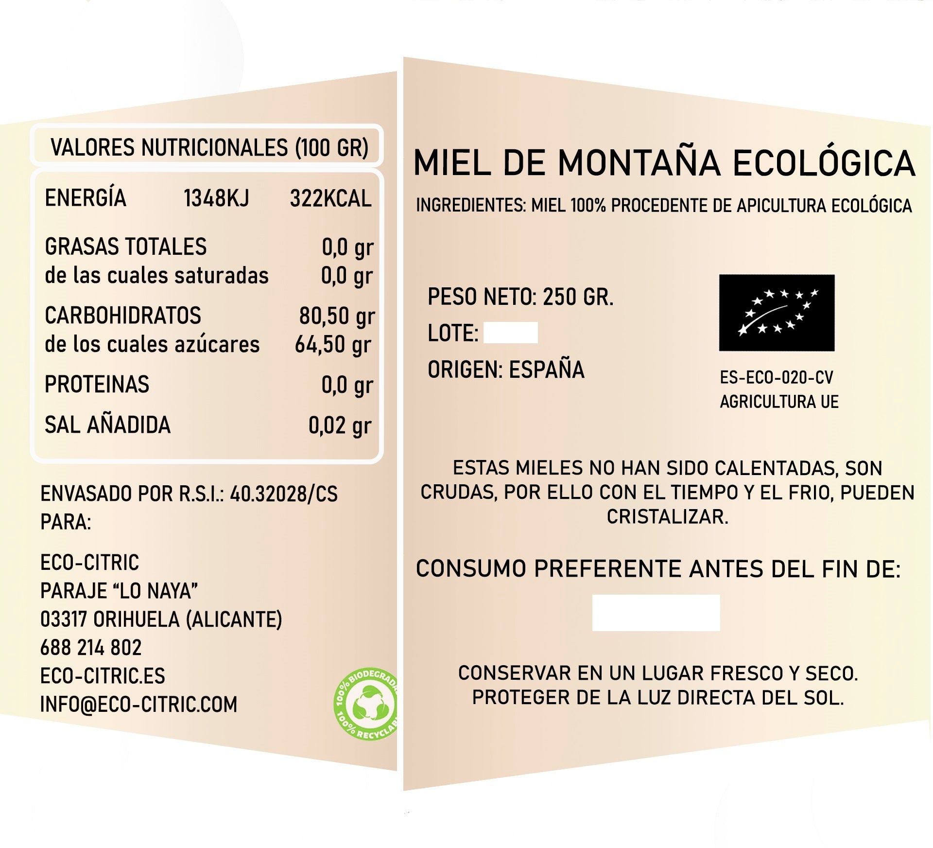 ✅ Solo miel recolectada con mimo en zonas altas de montaña.